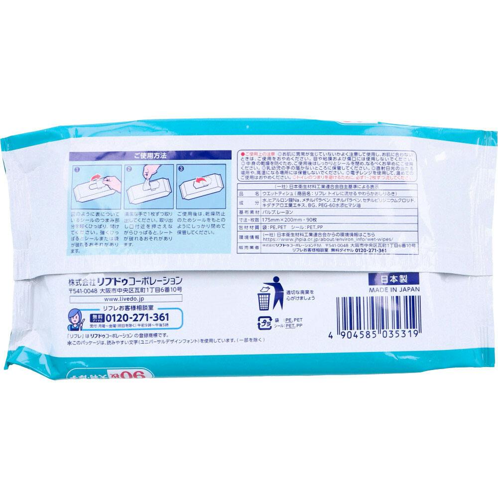 リフレ トイレに流せるやわらかおしりふき 90枚入 ×1点【送料込み】 #4904585035319