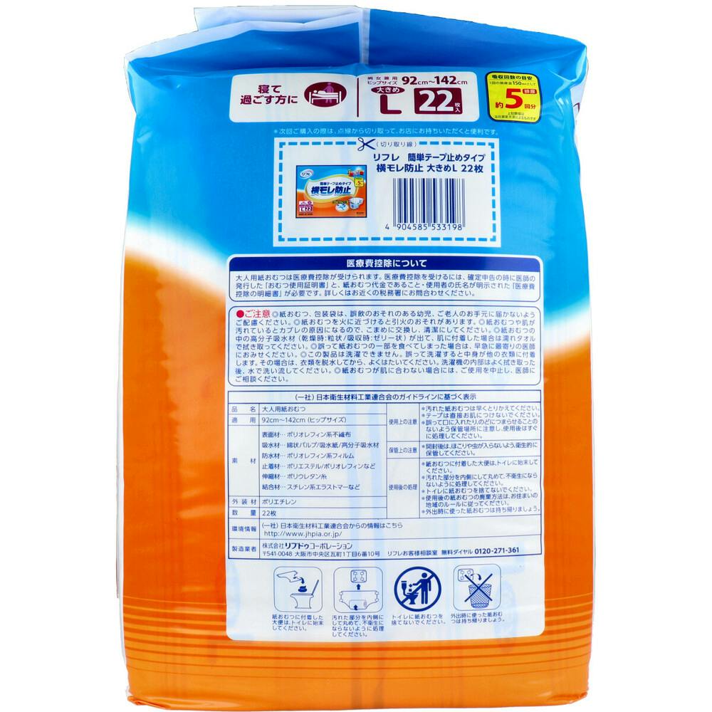 リフレ 横モレ防止 簡単テープ止めタイプ 大きめLサイズ 22枚入 ×1点【送料込み】 #4904585533198