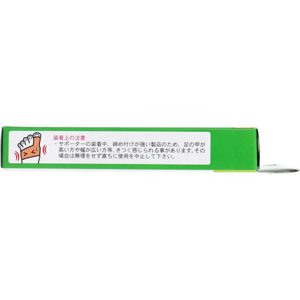 ストップ!ザ・外反母趾。現代人の足から消えた横アーチを取り戻せ!横アーチをつくり痛みを緩和!靴がはける、繰り返し使用できる薄型サポーター!外反母趾の方ほど積極的に外出し、歩くことにより足の裏の筋肉(横中足靭帯)を鍛え、横アーチを再形成させることを目的としています。●ゆるんだ中足関節をしっかりサポートし、痛みを軽減させます。●締め付けがハードなタイプです。中足間接を強い伸縮力で固定します。●簡単装着・重ね履きOK。●足の痛みをやわらげます。★外反母趾とは親指が外反(くの字に曲が