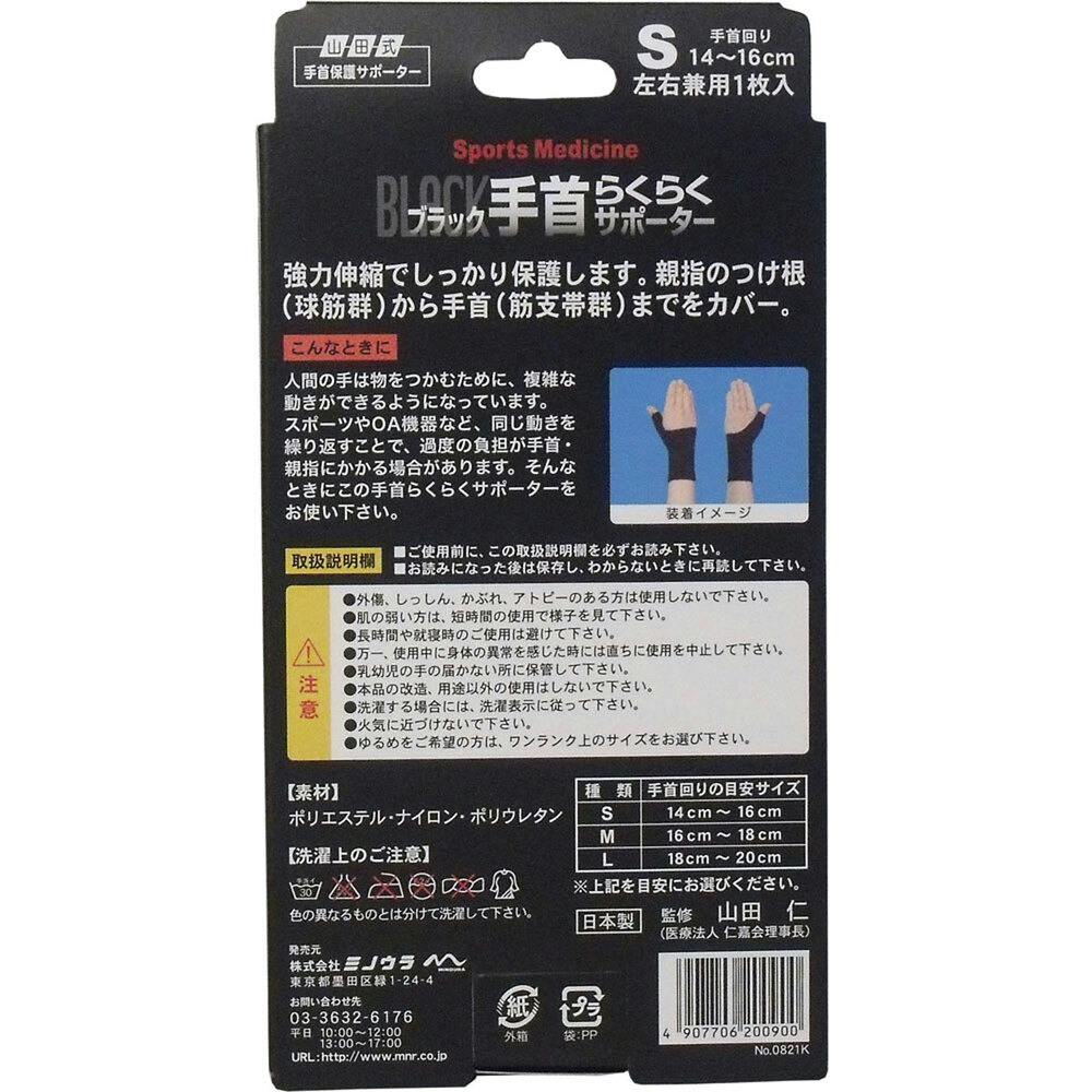 山田式手首保護サポーター 手首らくらくサポーター ブラック Sサイズ 1枚入 ×1点【送料込み】 #4907706200900
