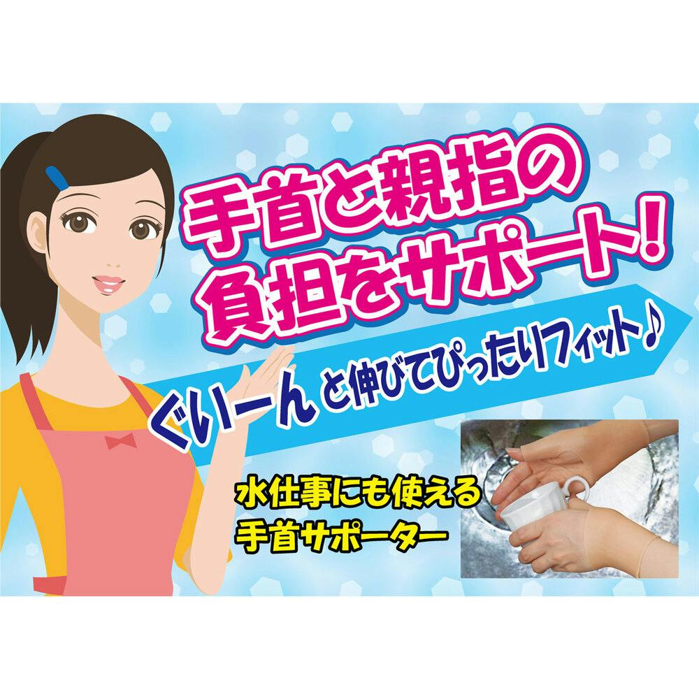手のトラブルにはこれ!!手首、親指の負担に!水仕事に使いやすい!ぴったりフィットで密着固定!強力伸縮でしっかり保護します。親指のつけ根(球筋群)から手首(筋支帯群)までをカバー。●伸縮自在ゲルタイプ。<