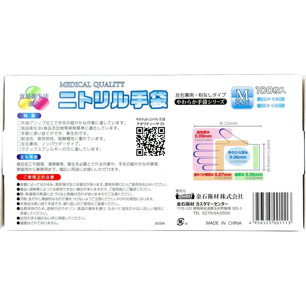 やわらかニトリル手袋 パウダーフリー 100枚入 Mサイズ ×1点【送料込み】 #4956525001113