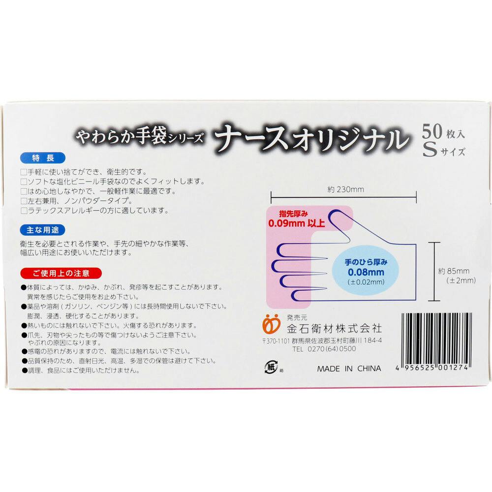 やわらか手袋 ナースオリジナル ビニール素材 Sサイズ 50枚入 ×1点【送料込み】 #4956525001274