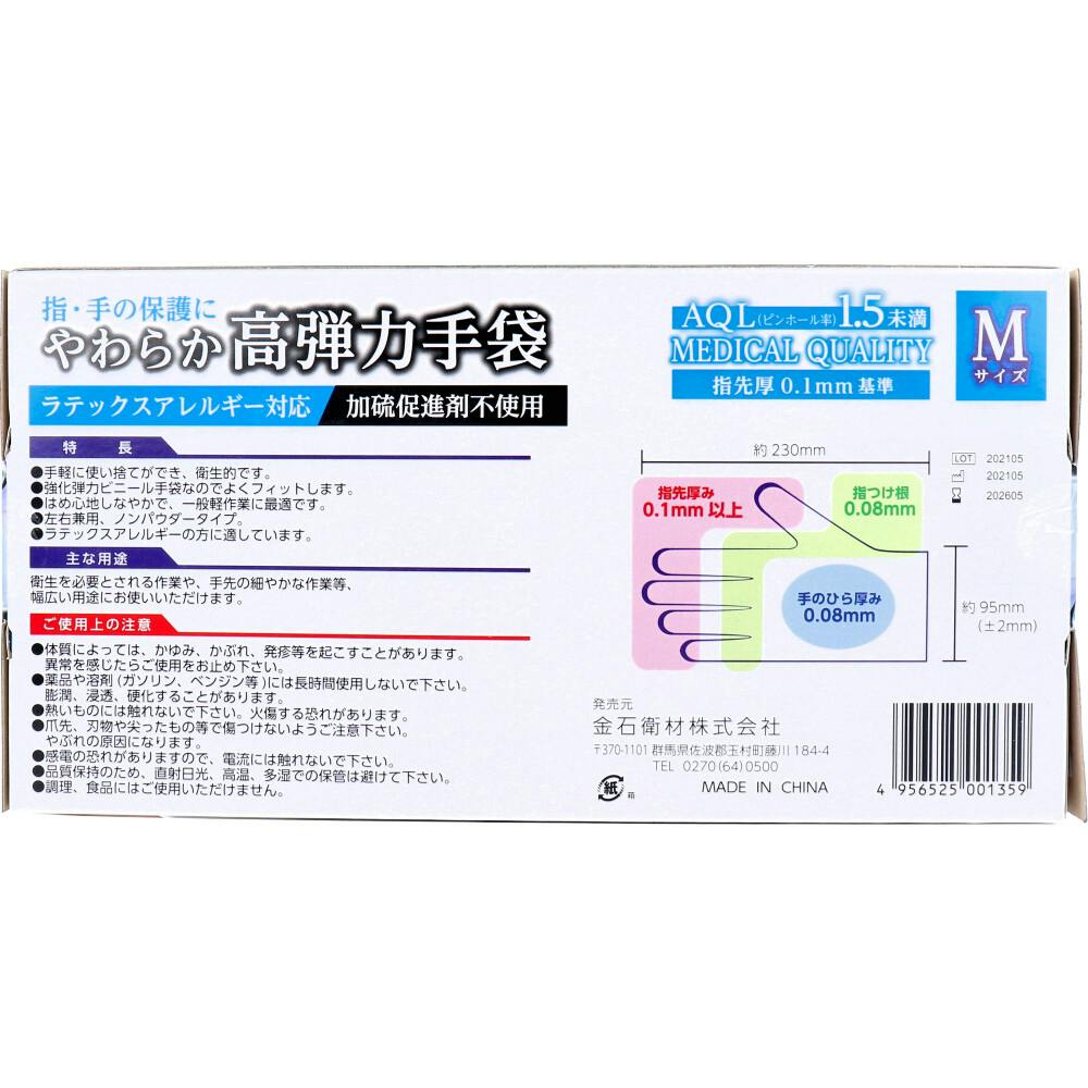 やわらか高弾力手袋 ビニール素材 ノンパウダー Mサイズ 100枚入 ×1点【送料込み】 #4956525001359