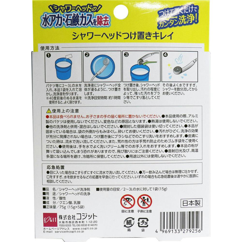 シャワーヘッドつけ置きキレイ 1回使いきりタイプ 洗浄5回分 15g×5袋入 ×1点【送料込み】 #4969133279256