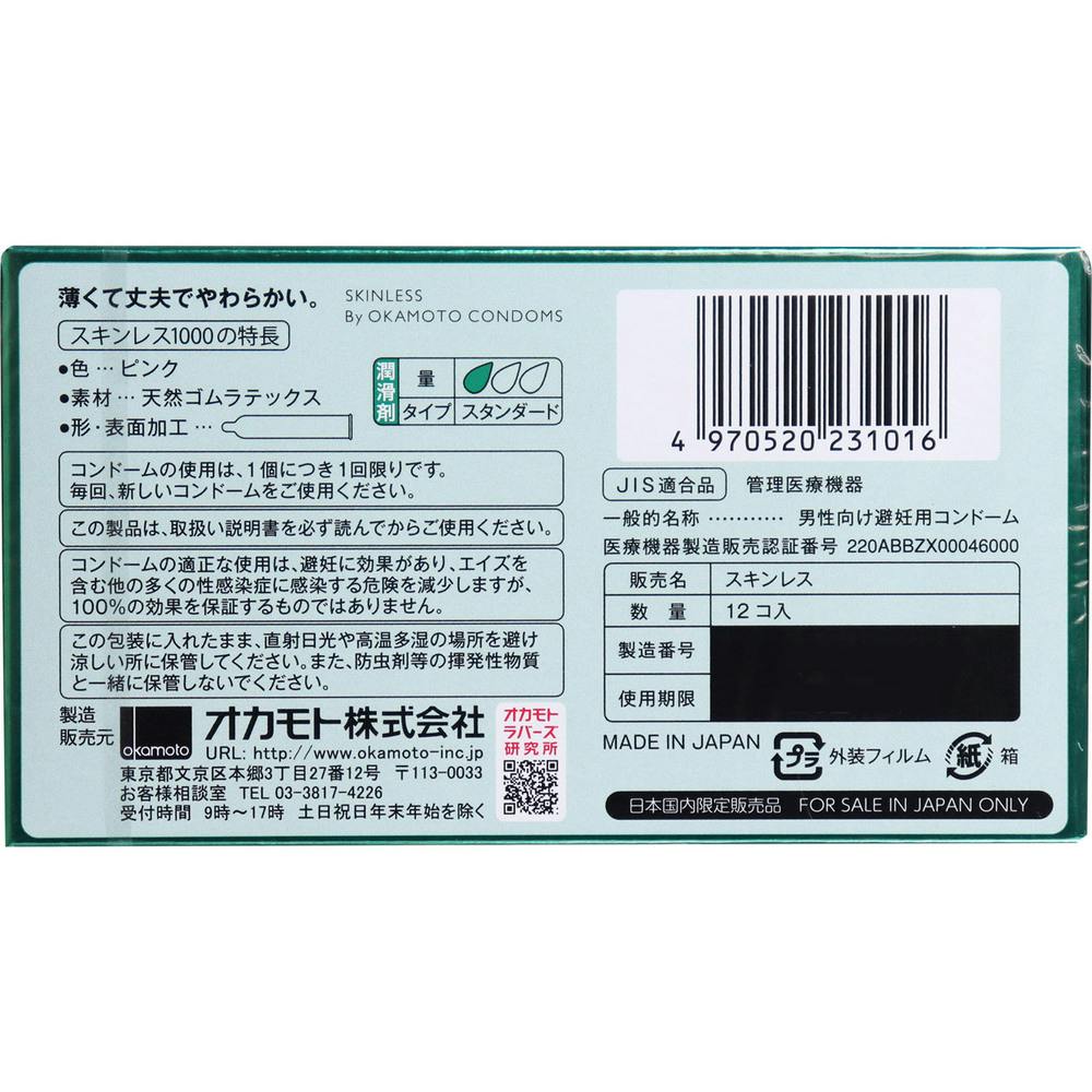 オカモト スキンレススキン1000 コンドーム 12個入 ×1点【送料込み】 #4970520231016