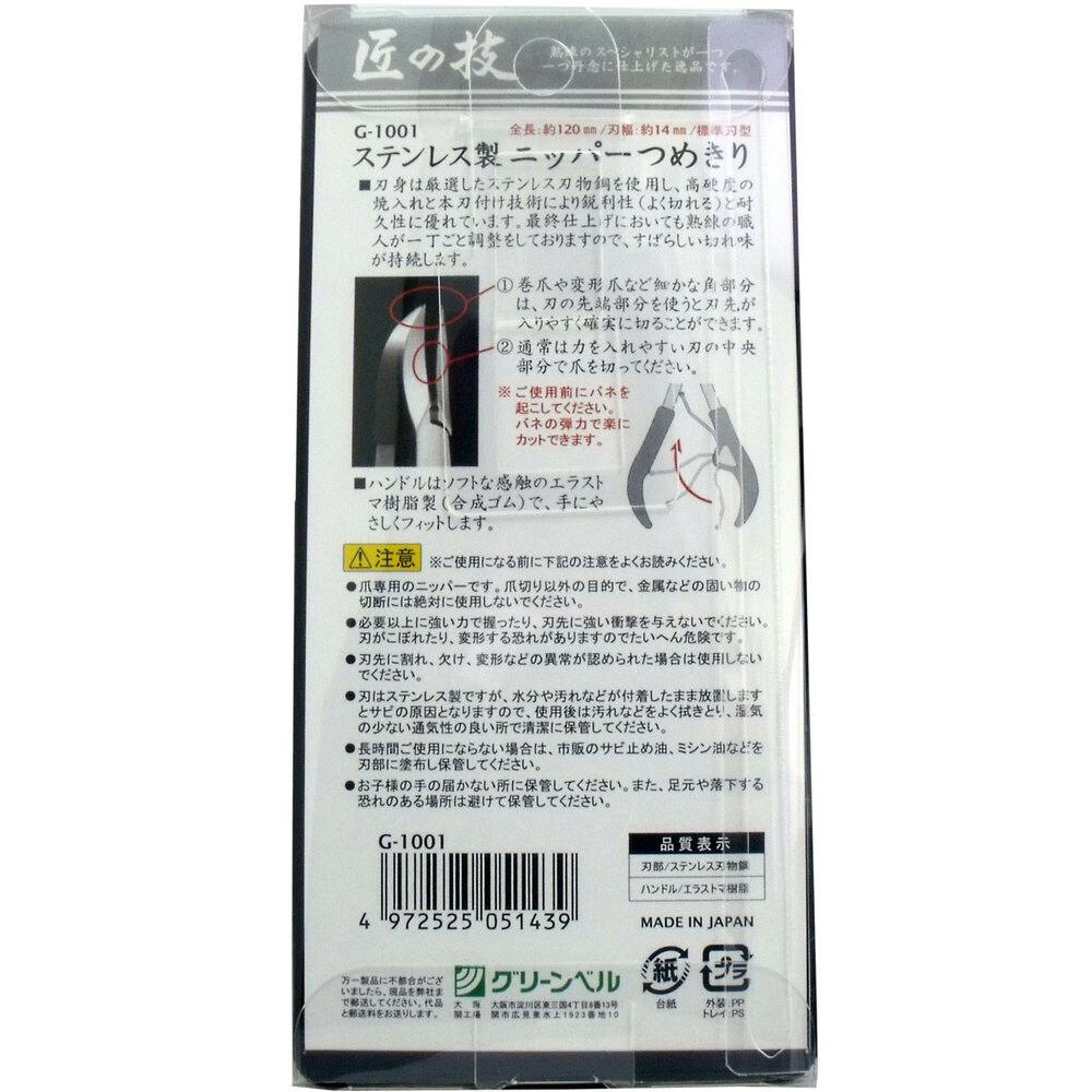 匠の技 ステンレス製 ニッパーつめきり G-1001 ×1点【送料込み】 #4972525051439