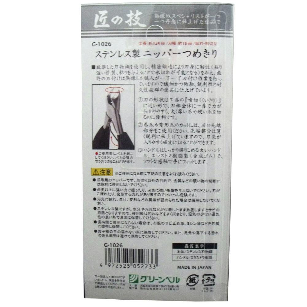 匠の技 ステンレス製 ニッパーつめきり 凹刃(喰切型) G-1026 ×1点【送料込み】 #4972525052733