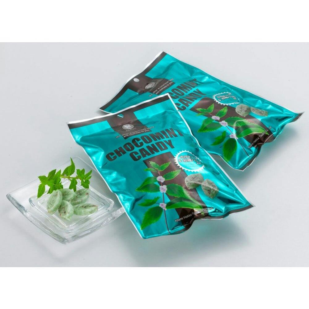 ジを表現しました。●カカオニブの香ばしさと食感、心地良い風味は、小さなお子様にも、オリジナルハッカ飴(リーフ型)のファンにも喜んで頂けます。●北見地方産和種ハッカと香ばしいカカオニブのキャンディです。北見産の希少な「精製メントール」配合の「嫌味なくやさしい」香りと味をお楽しみください。●ミントが苦手な方にもオススメなキャンディーです。●合成原料は一切使用しておりません。