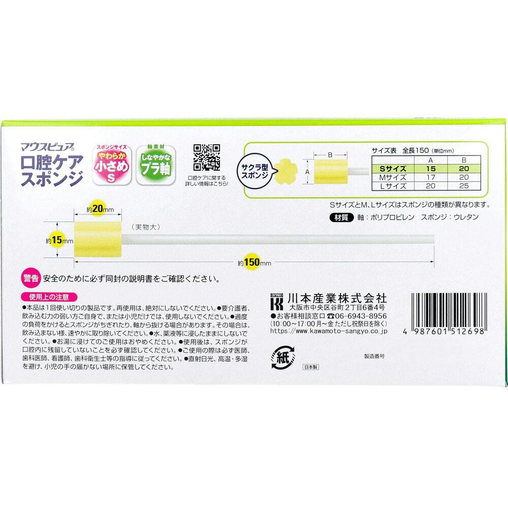 お口の汚れをすっきり取り除く。キメが細かく、粘膜にやさしい、やわらかいスポンジです。●汚れが取りやすいサクラ型(波形の溝付き)のスポンジです。●歯の表面、歯茎、上あご、舌の汚れを効果的に取り除けます。●出血がわかりやすい黄色のスポンジです。●軸が長いので、お口のすみずみまできれいに清掃できます。●1本ずつの個別包装で使い切りなので衛生的です。●しなやかなプラ軸。●やわらか小さめSサイズ。