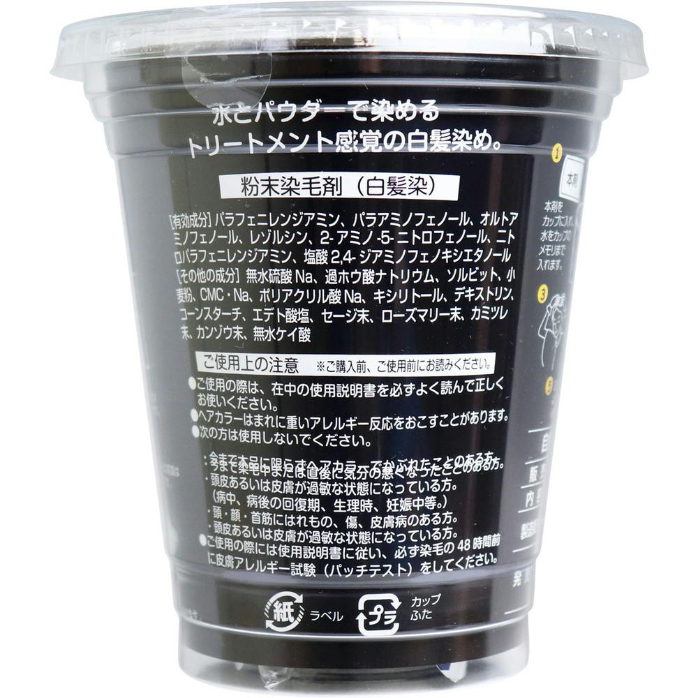 ら楽しんで、ご使用いただけます。ヘナは一切使用せず、食品添加物から生まれた安全な原料を使用しています。●パウダーを水で溶くだけで簡単に染められる白髪染めです。●頭皮がしみません。●今までのツーンとくるいやなアンモニア臭が無く、ハーブの香りです。