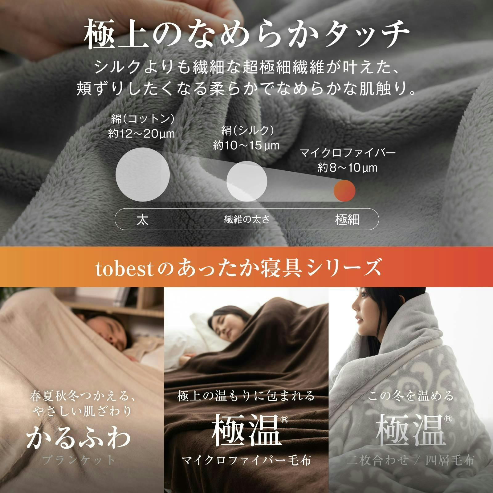 【送料無料】tobest 極温 毛布 冬【静電気防止W加工】膝掛け ブランケット ハーフ 極上の暖かさと肌触り 高密度フランネル ふわふわ 軽くて暖かい プレミアム マイクロファイバー 洗える 100×140cm ハーフケット グレー