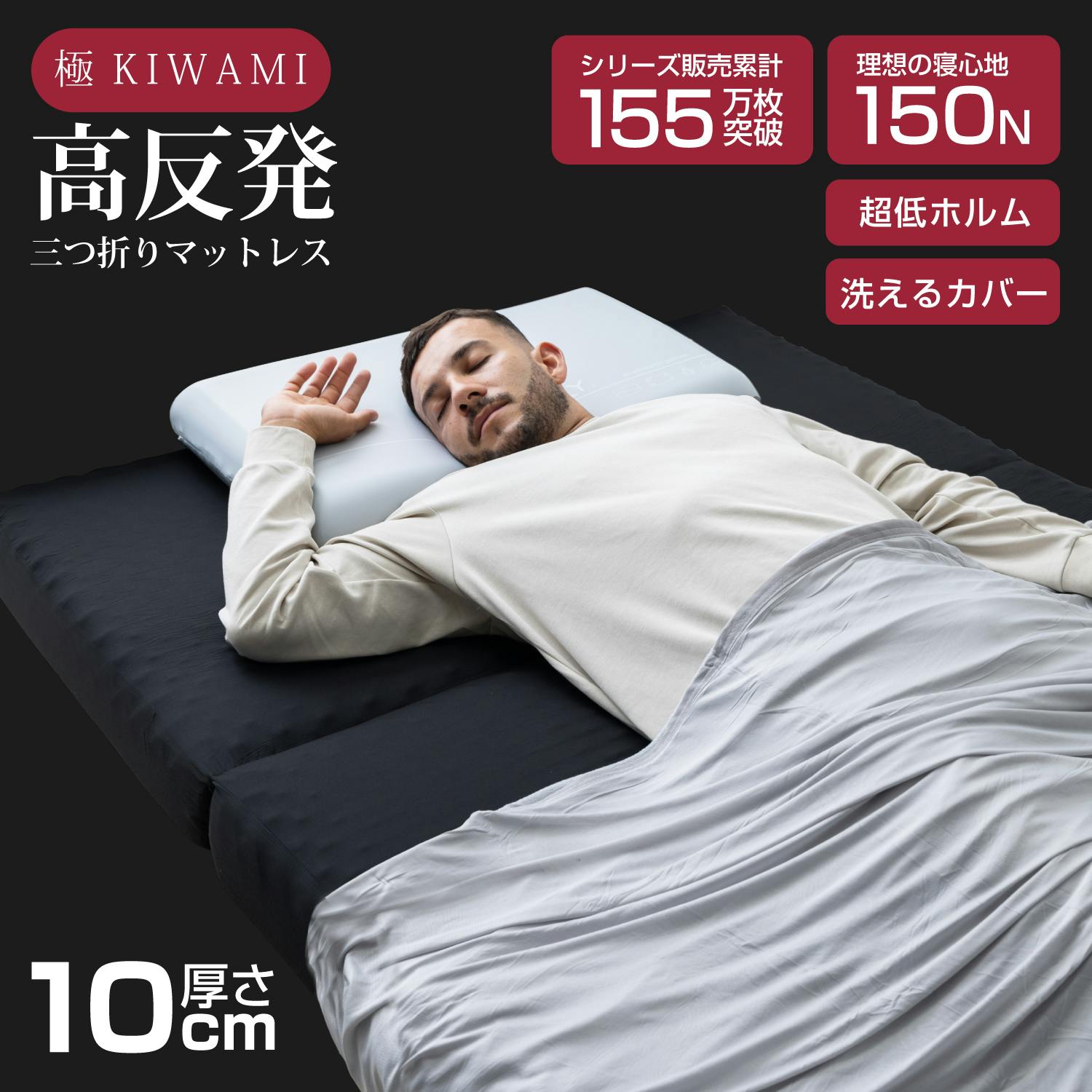 tobest「極」高反発マットレス 3つ折り 10cm 絶妙な硬さ プロファイル加工 折り畳み ベッド 敷布団 ベッドマット 極厚 三つ折り ブラック シングル S
