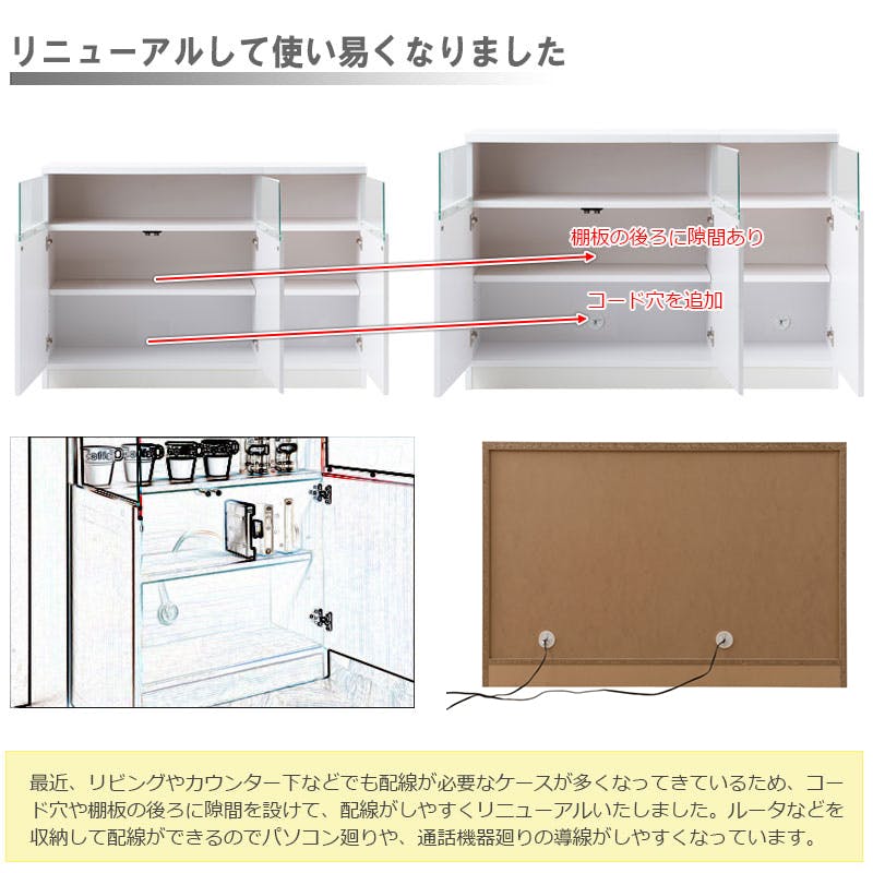 ■商品サイズ/本体:(約)幅118×奥行29.5×高さ80cm■ガラス部内寸/(約)幅(大)73.5(小)35.5×奥行26×高さ18cm■扉内寸/(約)幅(大)72(小)34×奥行26(棚板21後部1cm配線用隙間あり)×高さ46cm■棚板/可動式(大)(小)各1枚(6cmピッチ・3段階)■耐荷重量/天板:(約)20kg、棚板:(約)5kg■商品重量/(約)28kg■日本製■完成品