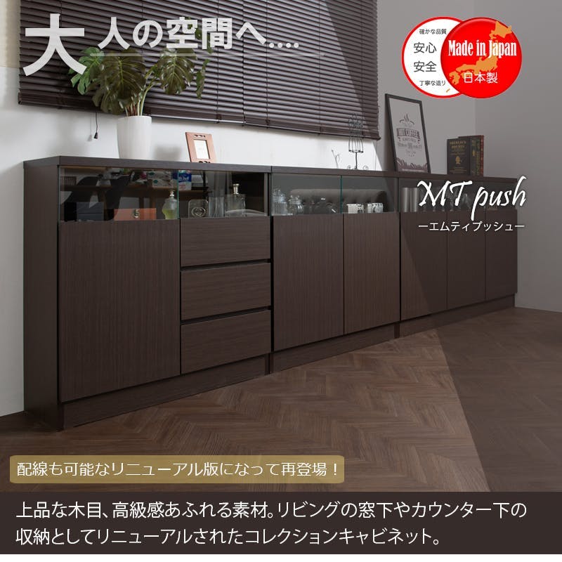 薄型リビングボード 幅118 奥行30 扉タイプ サイドボード キャビネット ダークブラウン 日本製 完成品 茶 大川家具 リビング収納 収納家具 収納 棚 木製 北欧 おしゃれ シンプル モダン リビング カウンター下収納 食器棚 キッチン ガラスキャビネット