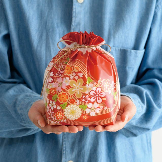 ヘッズ ラッピング袋 巾着 W220×D110×H200mm 赤 20枚 和風PE巾着バッグ 着物柄 HEADS WA-BM1
