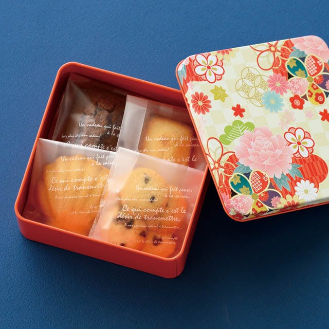 ヘッズ ギフト缶 W127×D127×H50mm 赤 10個 和風ギフト缶 和柄 HEADS WA-CAN1