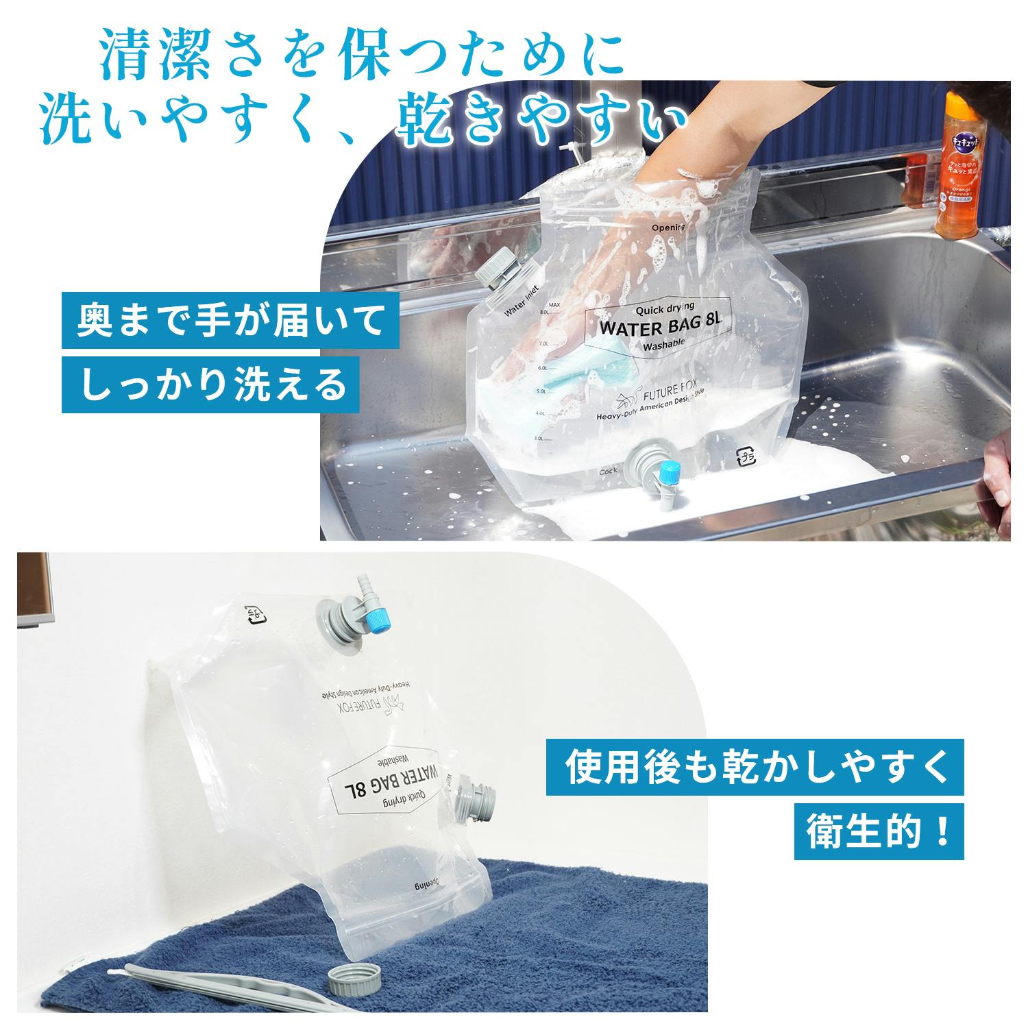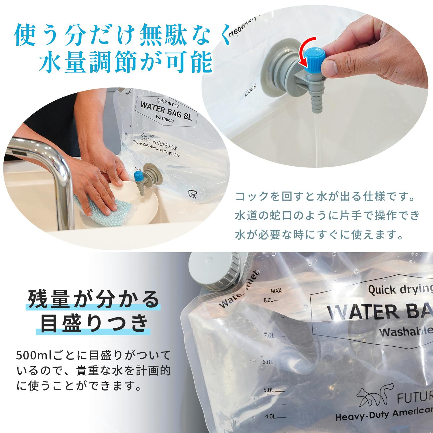 FUTURE FOX 非常用 ウォータータンク 8L 給水タンク ウォータージャグ ウォーターバッグ 防災グッズ コンパクト 繰り返し使える 防災 食品衛生法適合
