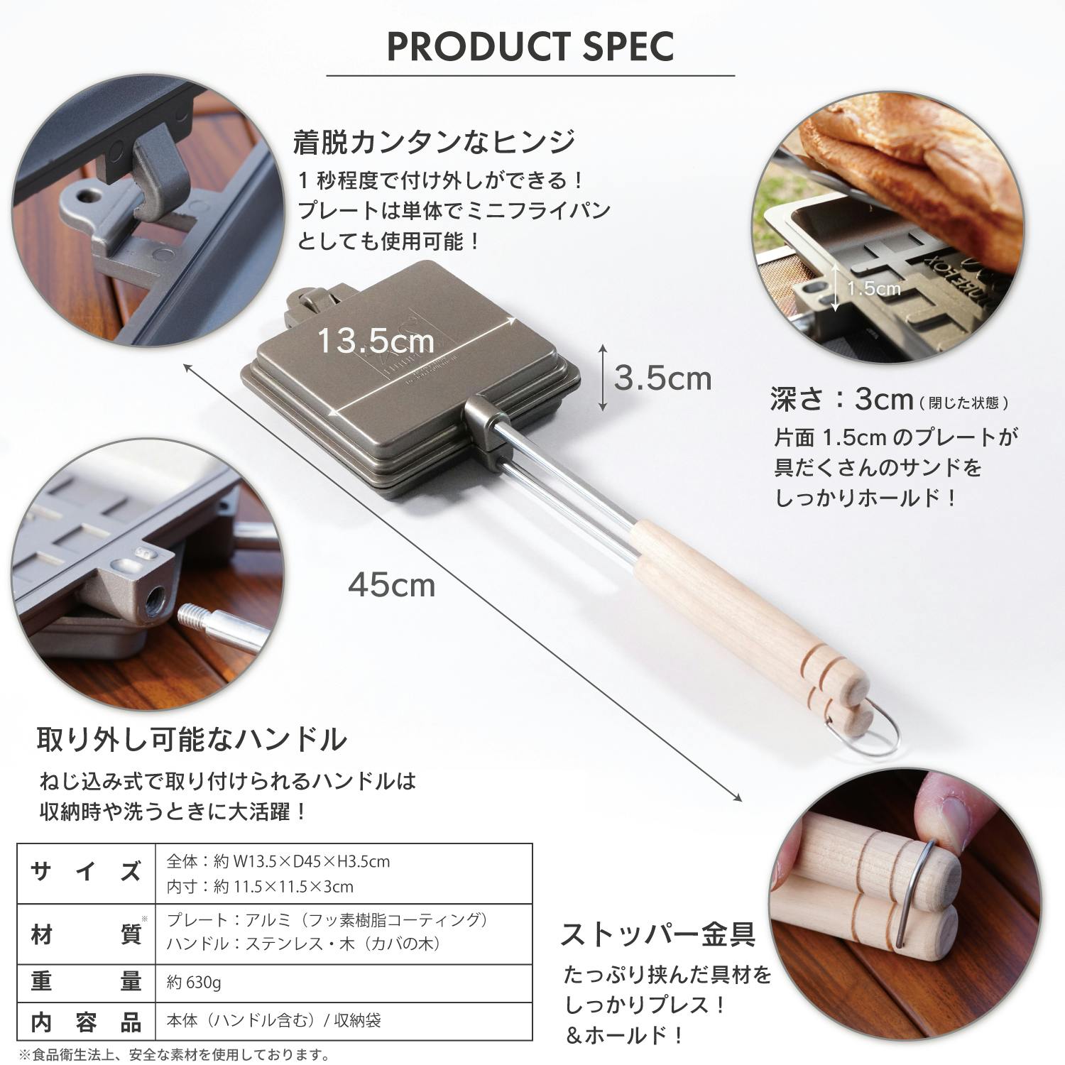 FUTURE FOX ホットサンドメーカー 直火 分離式 コンパクト収納 焦げ付きにくい 深さ3cm キャンプ