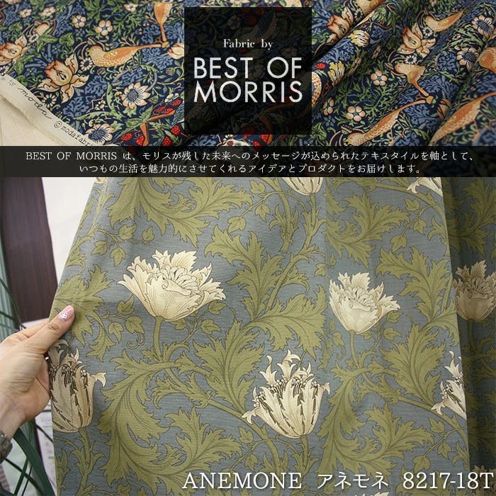 カーテン 日本製 モリス柄 デザイン生地 使用 幅100cm×丈178cm 2枚 両開き 1窓用 アネモネ 8217-18T Fabric by BEST OF MORRIS moda fabrics 自社工場縫製 2倍ヒダ タッセル付