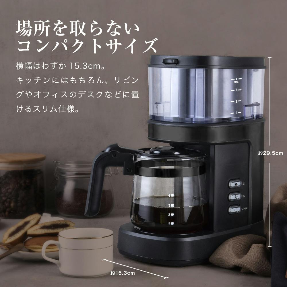 tobest コーヒーメーカー ミル付き 全自動 【Makuakeで4000%達成!ボタンひとつで豆本来の香りと旨みを堪能】ドリップ式 豆・粉両対応 紙フィルター不要 保温 お手入れ簡単 600ml 1度に4杯分 ステンレス コーヒーマシン コンパクト 法人 オフィス TSK-1589B