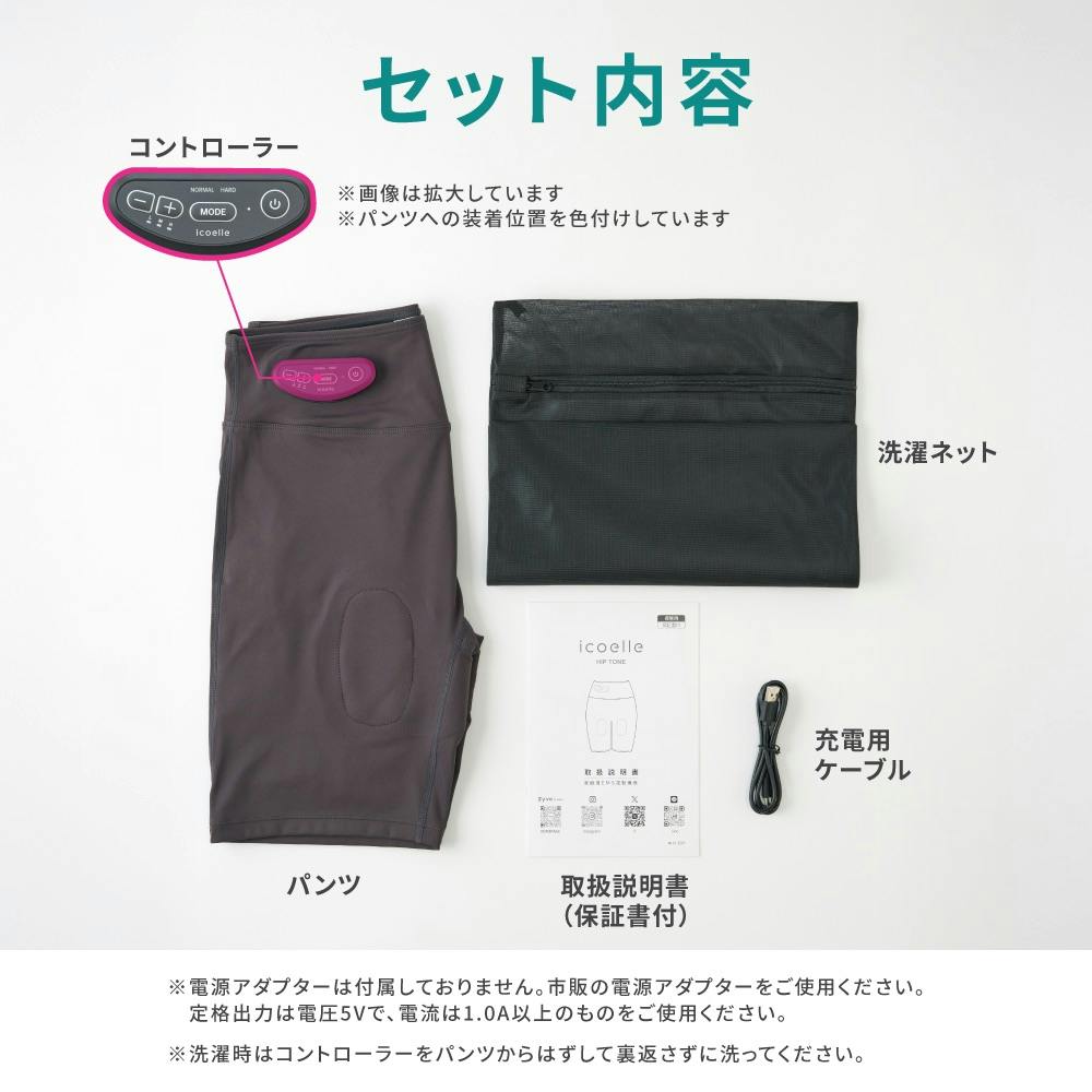 パンツ1、コントローラー1、充電用ケーブル1、洗濯ネット1、取扱説明書