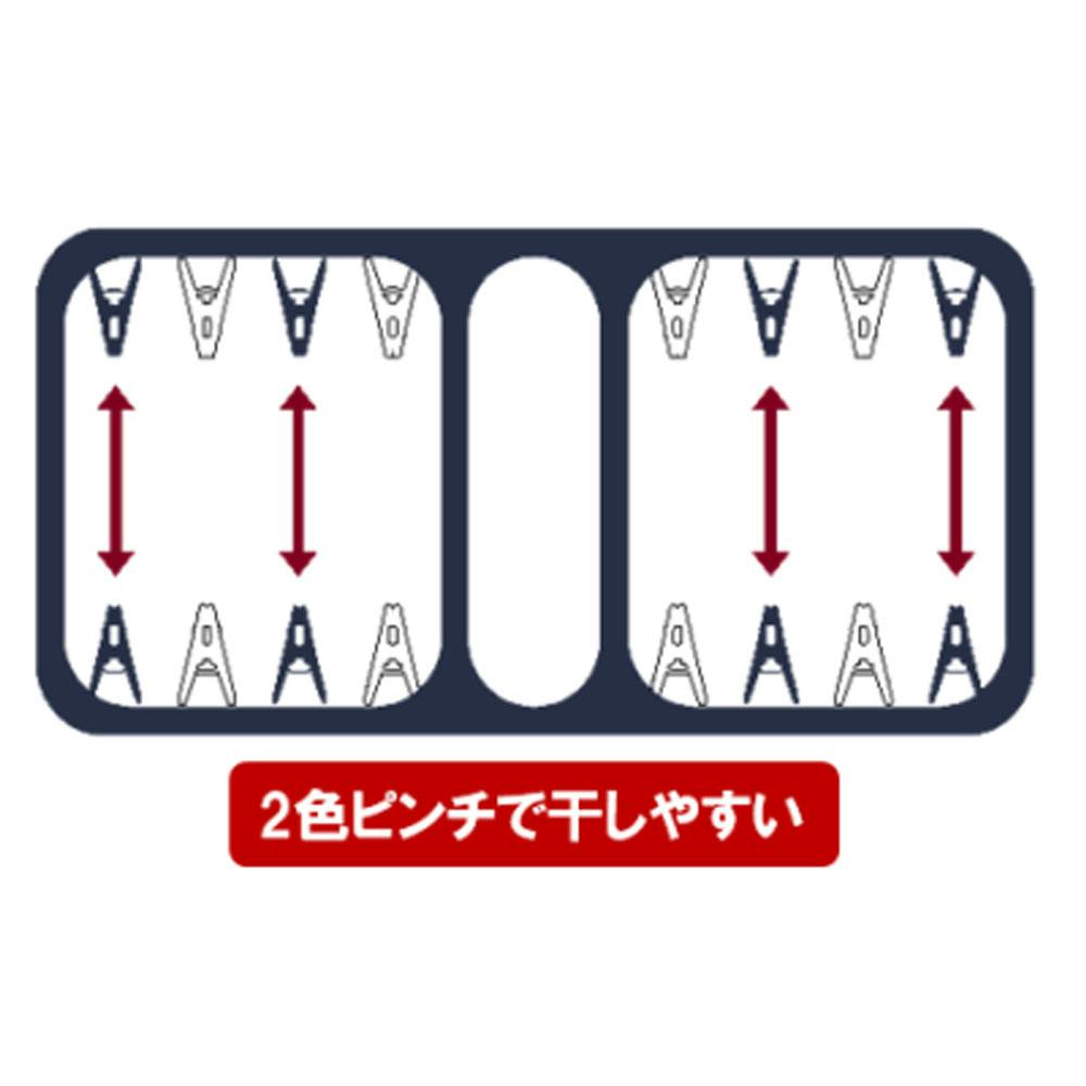 洗濯物をまっすぐキレイに干しやすい2色ピンチで干しやすい。●2色のピンチを向かい合わせに配置。まっすぐキレイに干しやすい。●便利なキャッチフック。強力バネでしっかり固定。カモイ用フック付き。
