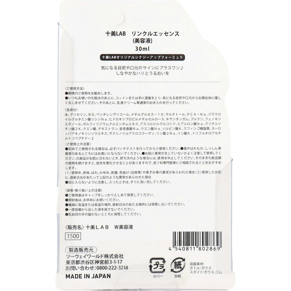 十美LAB お悩み別美容液 リンクルエッセンス 30mL ×1点【送料込み】 #4540811802869