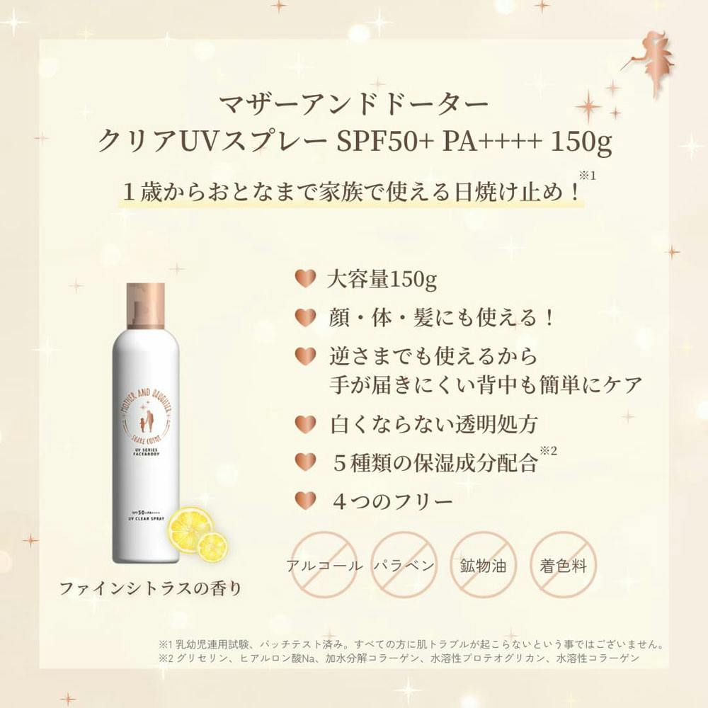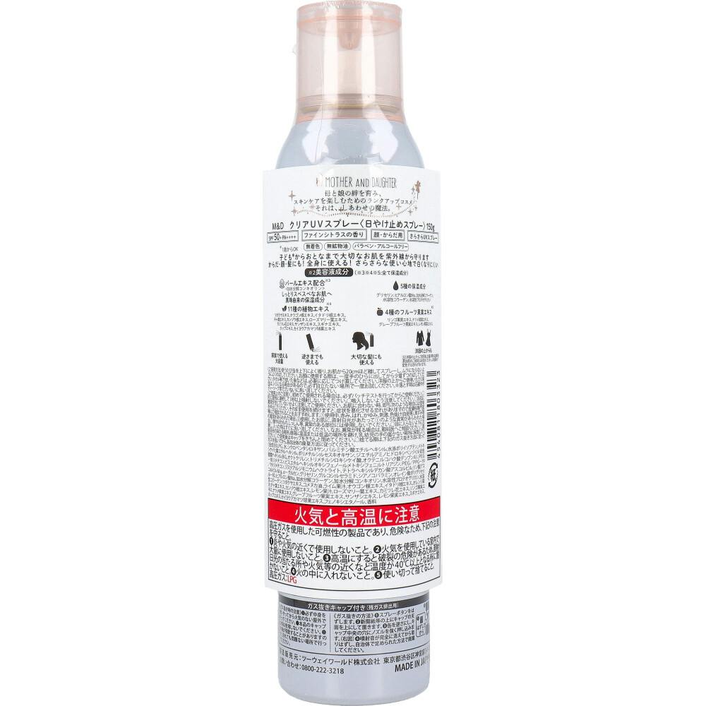 マザーアンドドーター クリアUVスプレー 日やけ止めスプレー SPF50+ PA++++ 150g ×1点【送料込み】 #4540811803323