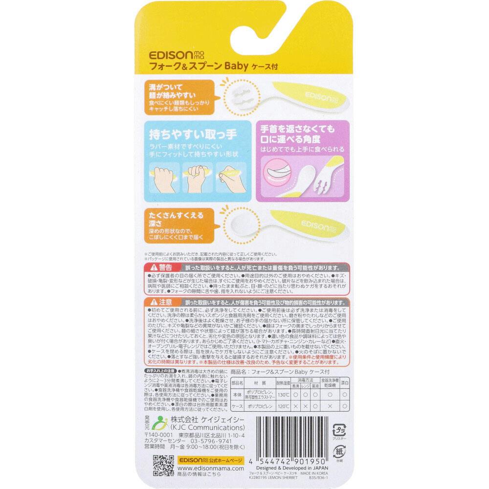 エジソンママ フォーク&スプーン Baby 右手用 ケース付 レモンシャーベット ×1点【送料込み】 #4544742901950