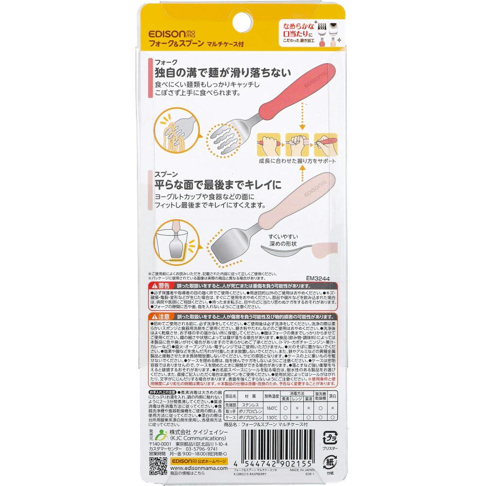 エジソンママ フォーク&スプーン マルチケース付 ラズベリー ×1点【送料込み】 #4544742902155