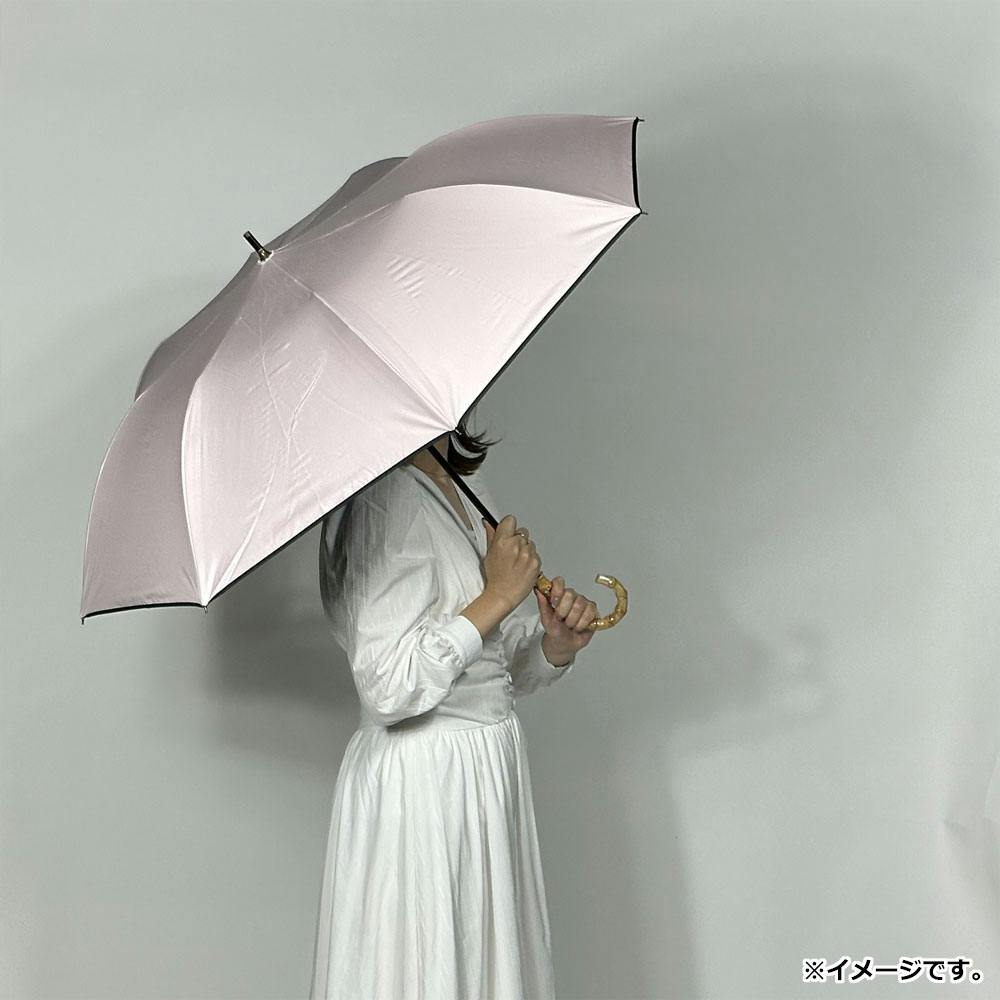 晴雨兼用ショートワイド傘 竹手元 裏黒コーティング 無地裾パイピング ピンク ×1点【送料込み】 #4571145784361