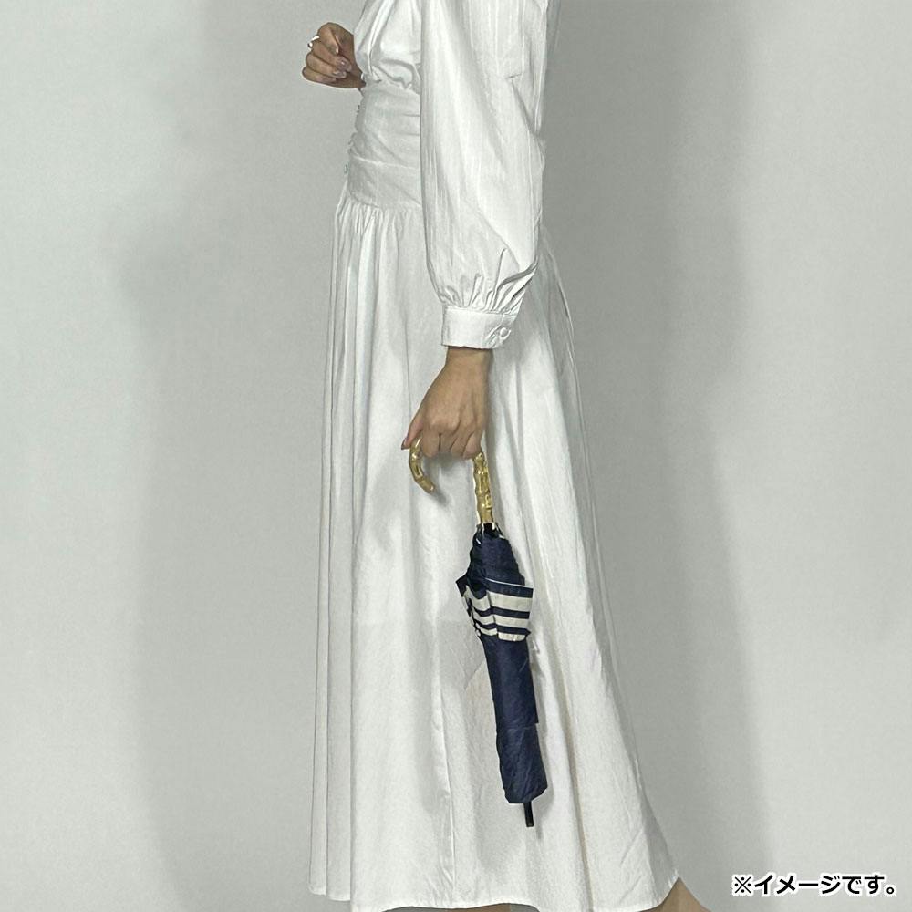 晴雨兼用ショートワイド傘 竹手元 裏黒コーティング マリンボーダー ネイビー ×1点【送料込み】 #4571145784590