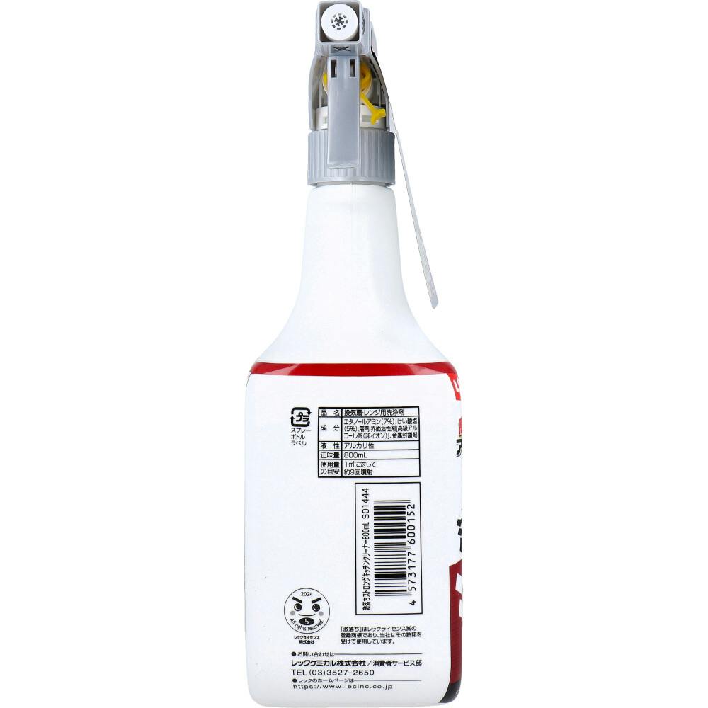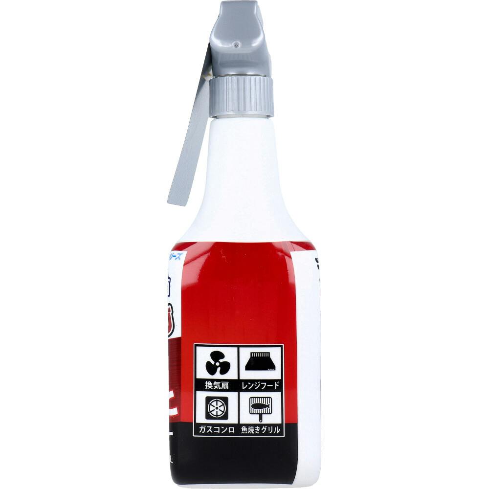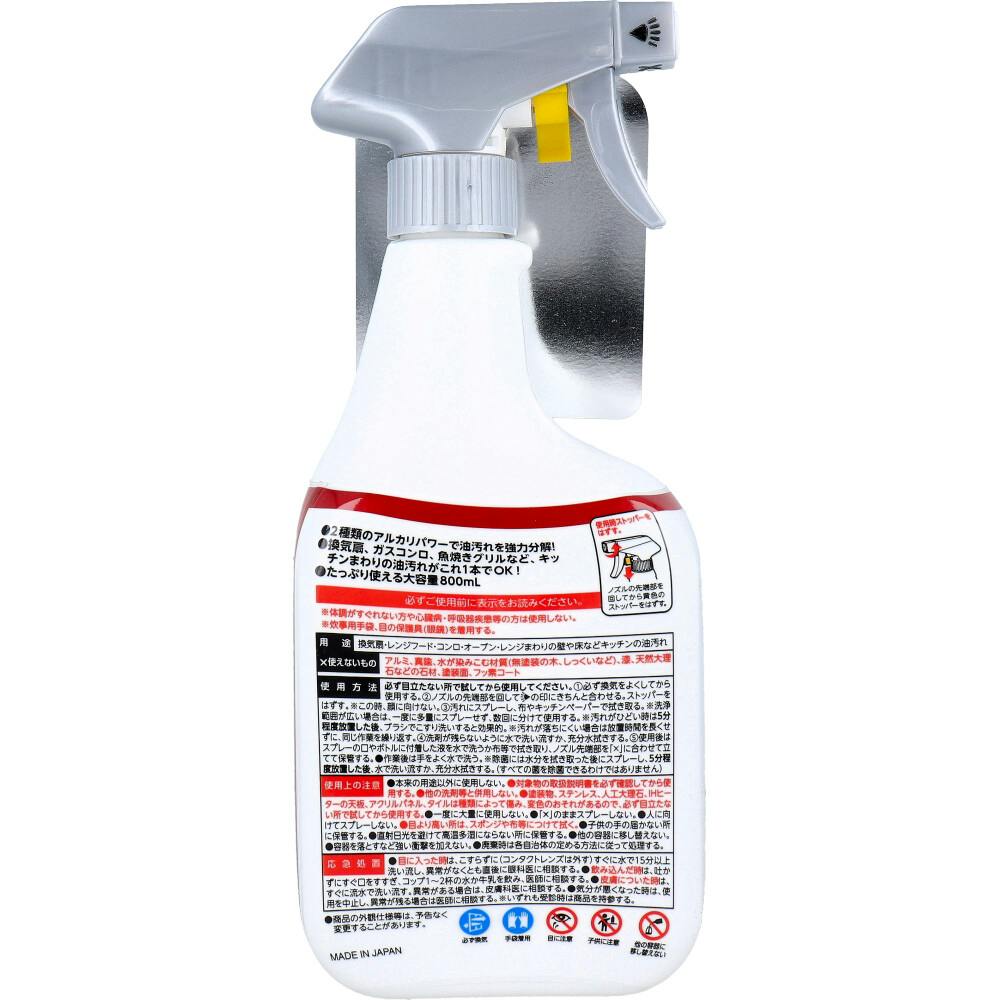 油汚れまるごと。2種類のアルカリパワーで油汚れを強力分解!●換気扇、ガスコンロ、魚焼きグリルなど、キッチンまわりの油汚れがこれ1本でOK!●高濃度(※)アルカリ。※レックケミカル社比。●除菌(※)。※すべての菌を除菌できるわけではありません。●たっぷり使える大容量800mL。