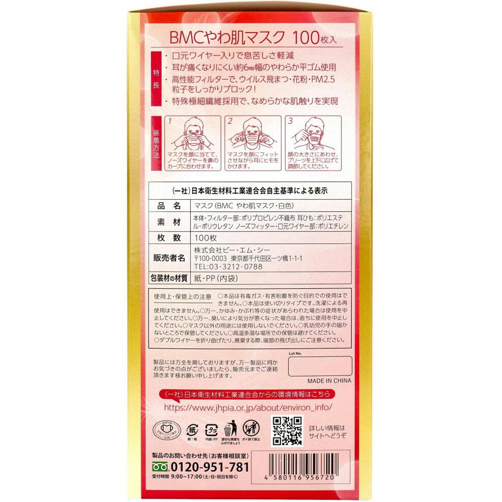 BMC やわ肌マスク 1日使いきりタイプ 小さめサイズ 大容量 100枚入 ×1点【送料込み】 #4580116956720