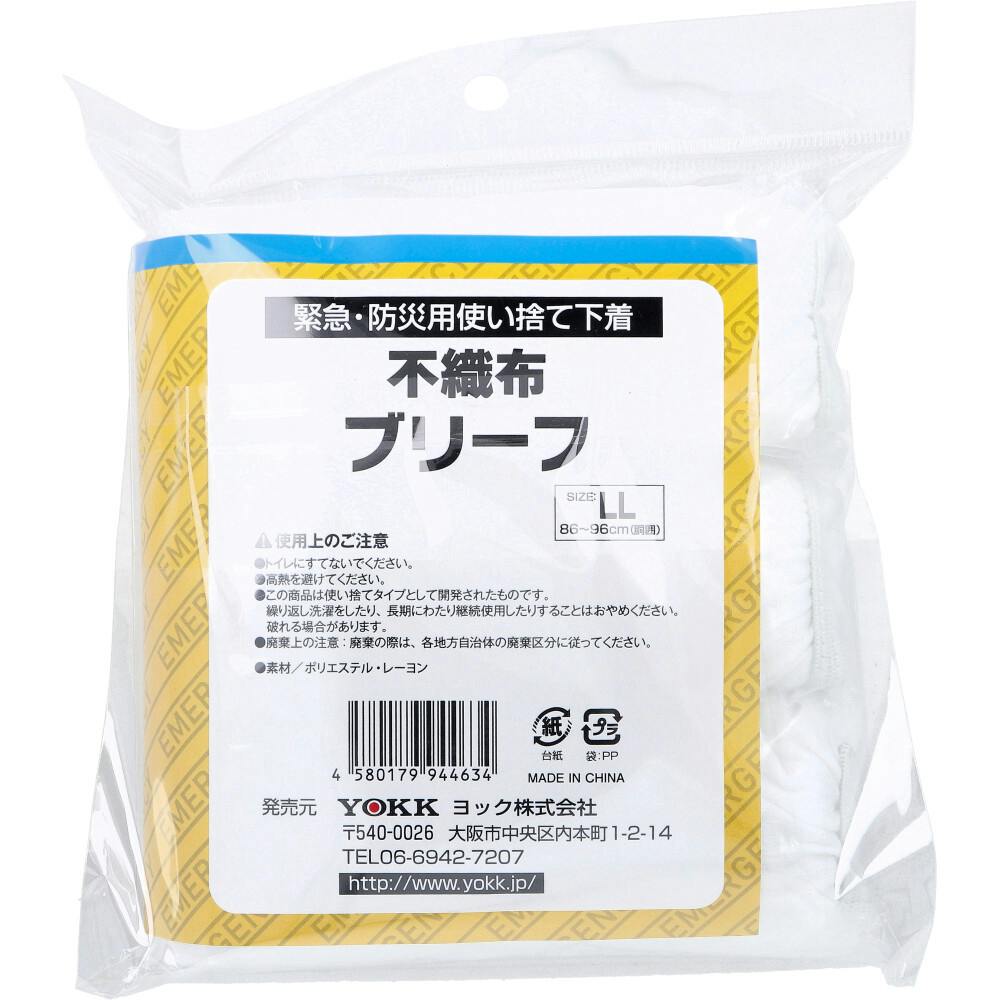 緊急・防災用使い捨て下着 不織布ブリーフ 前あきタイプ LLサイズ 3枚入 ×1点【送料込み】 #4580179944634
