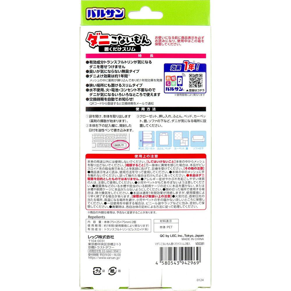 バルサン ダニこないもん 置くだけスリム 1年 2個入 ×1点【送料込み】 #4580543942969