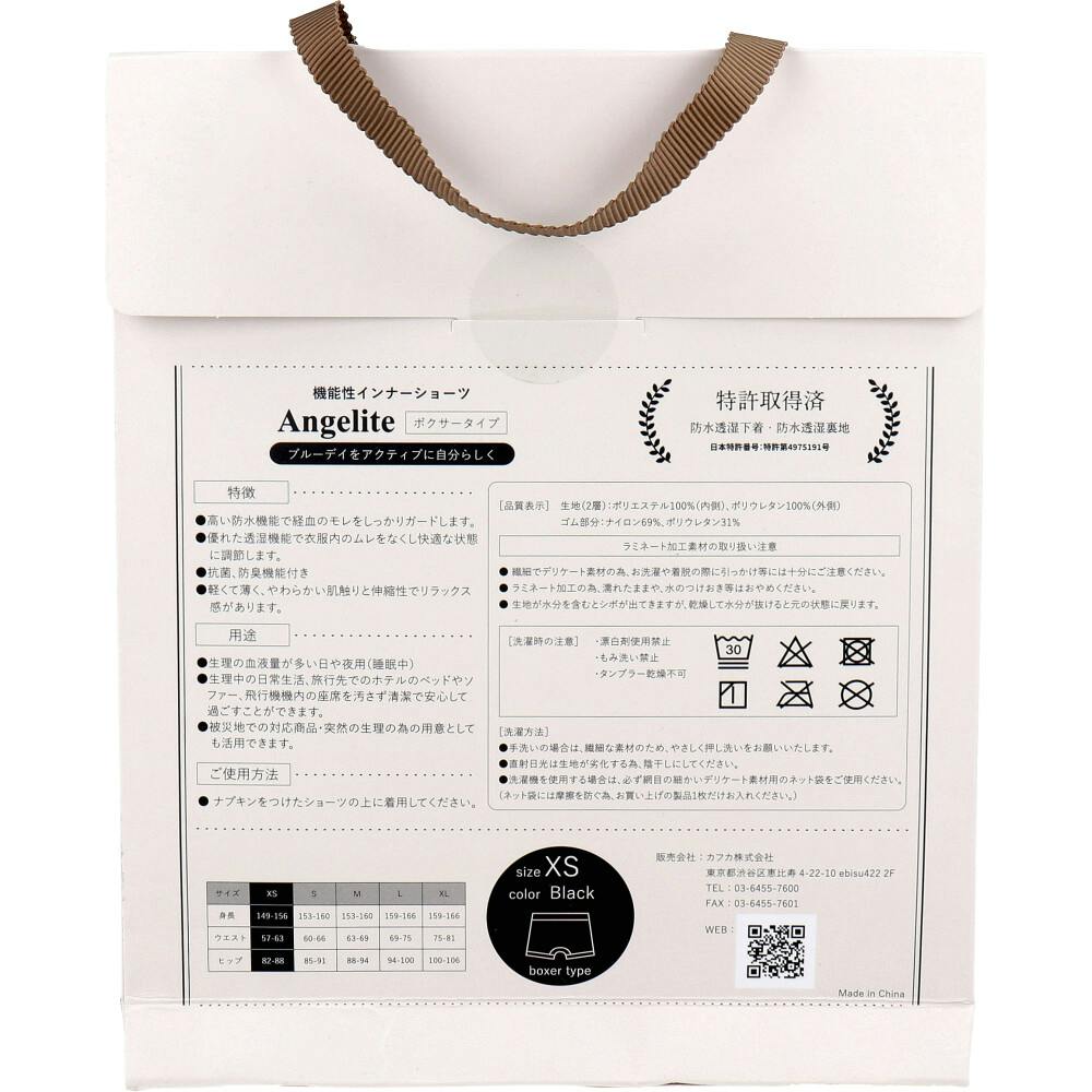 Angelite(アンジェライト) 機能性インナーショーツ ボクサータイプ ブラック XSサイズ 1枚入 ×1点【送料込み】 #4580640540099