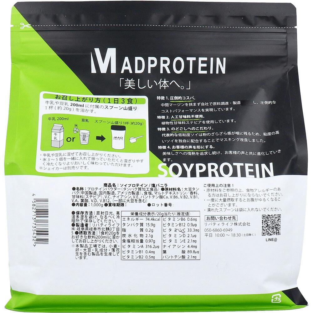 MADPROTEIN ソイプロテイン 塩バニラ 1kg ×1点【送料込み】 #4582713735432