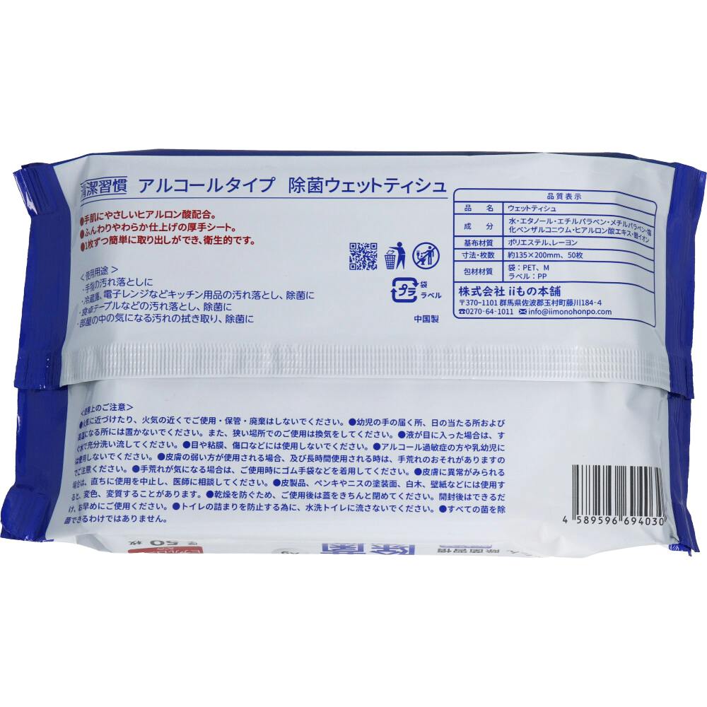 清潔習慣 除菌ウェットティシュ アルコールタイプ 50枚入×60個【ケース販売】 ×1点【送料込み】 #4589596694160