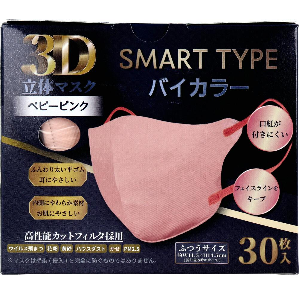 3D立体マスク スマートタイプ バイカラー ベビーピンク ふつうサイズ 30枚入 ×1点【送料込み】 #4589596694344