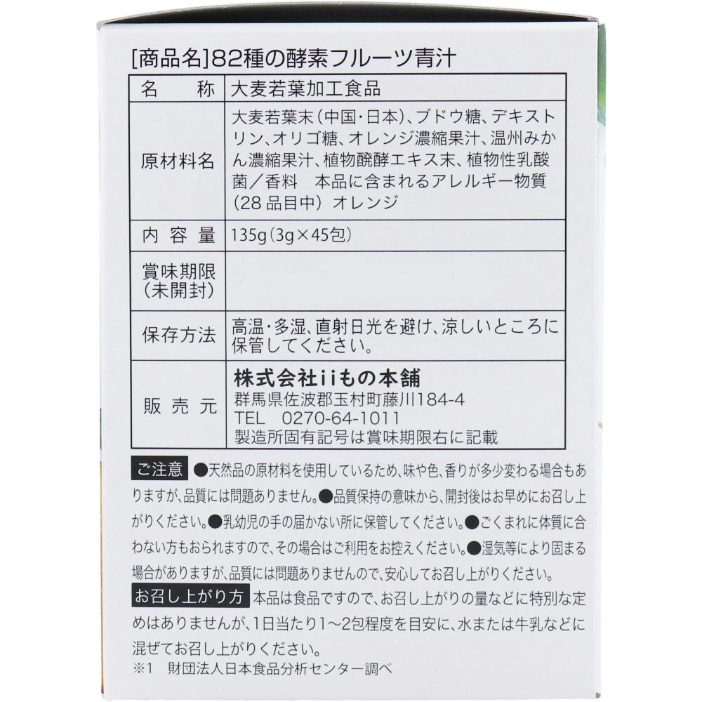 iiもの本舗 82種の酵素フルーツ青汁 3g×45包入 ×1点【送料込み】 #4589596694375