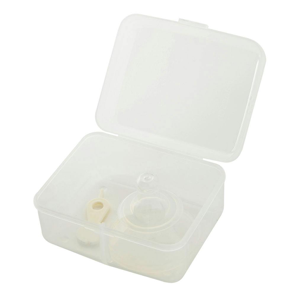 ・くぼみに指をはさみ、乳房へ押さえるようにかぶせます。あらかじめ、母乳をママニップルガードに少量しぼりだしてから、くわえさせてあげてください。※赤ちゃんが母乳の匂いを感じることで違和感が軽減され、母乳を飲みやすくなります。※ママニップルガードをつける前に、おっぱいにカネソンピアピアバーユまたはランシノーを薄く塗るとよりフィットします。