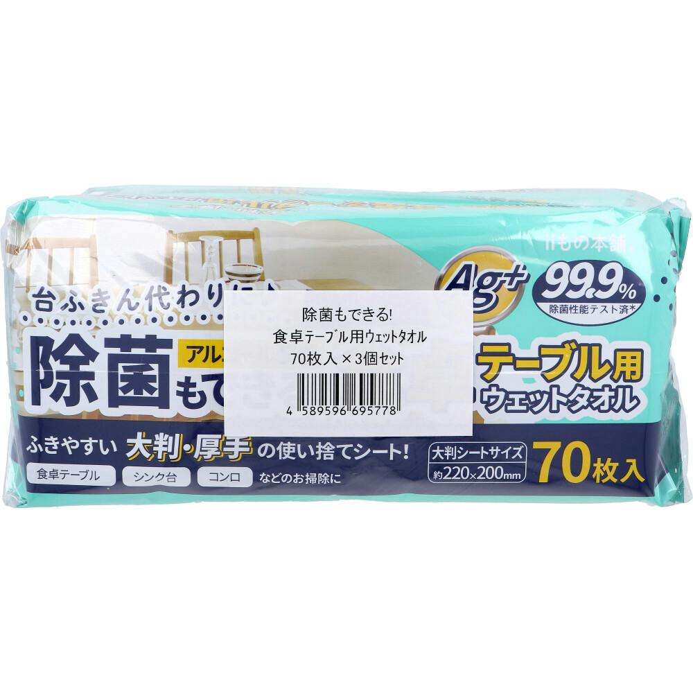 除菌もできる! 食卓テーブル用ウェットタオル 70枚入×3個セット ×1点【送料込み】 #4589596695778