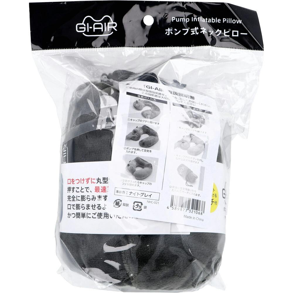 GI-AIR ポンプ式ネックピロー ナイトグレイ NHC-021 1個入 ×1点【送料込み】 #4589877321068