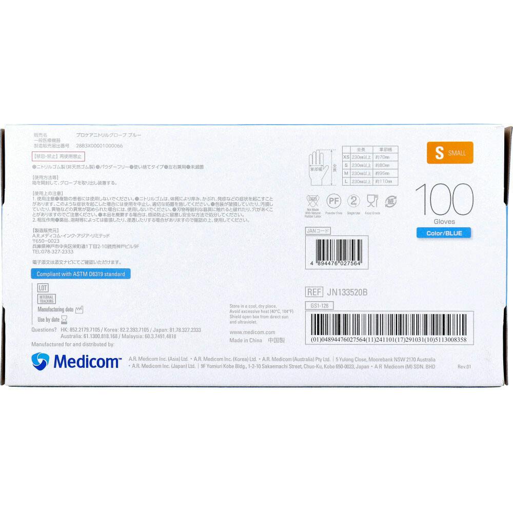 【業務用】プロケア ニトリルグローブ ブルー Sサイズ 100枚入 ×1点【送料込み】 #4894476027564