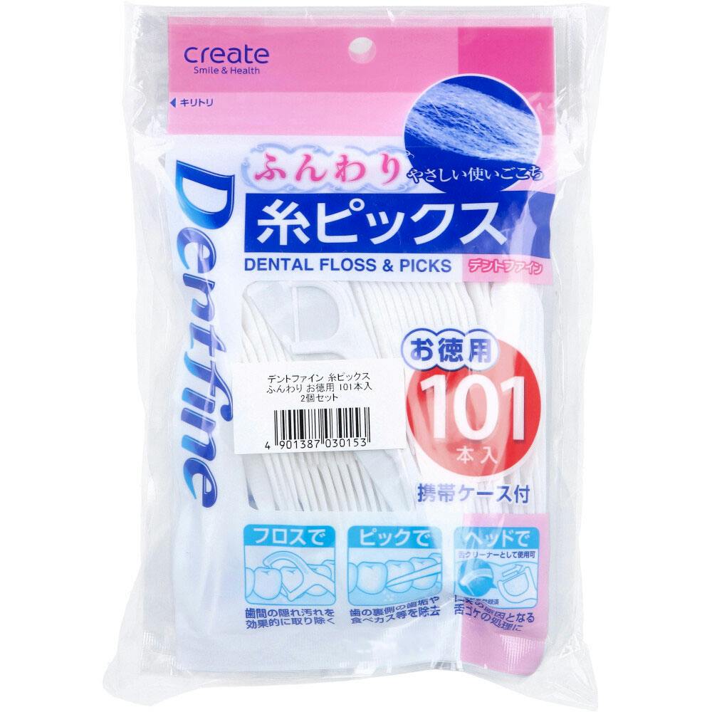 デントファイン 糸ピックス ふんわり 携帯ケース付 お徳用 101本入×2個セット ×1点【送料込み】 #4901387030153