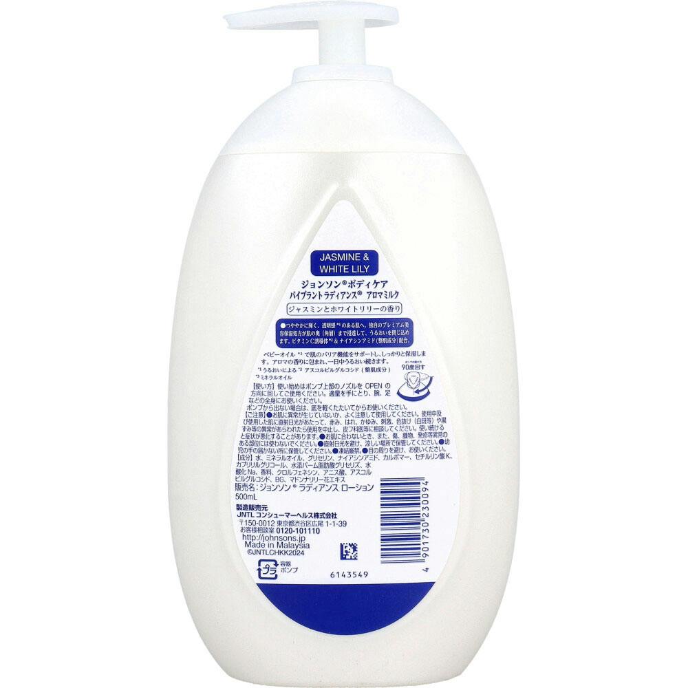 ジョンソンボディケア バイブラント ラディアンス アロマミルク ジャスミンとホワイトリリーの香り 500mL ×1点【送料込み】 #4901730230094