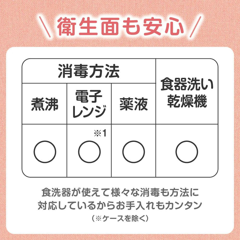 /食器洗い乾燥機:×,【食べさせ方】,(1)スプーンを下唇の上におき、口が開いて取り込むのを待つ。※口の中までスプーンを入れすぎないことで、舌の動作や飲み込みを妨げずに食べさせられます。(2)上唇がおりてきて取り込めたら、スプーンをゆっくり水平に引き抜く。※上あごに擦りつけないようにしましょう。5,6ヵ月は離乳食やスプーンに慣れる為の練習期間。ゆっくり進めましょう。