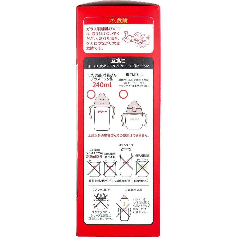 自分のペースで「できた」を増やしていこう♪コップ・ストローどちらからでも始められる!コップ・ストロー、焦らないでゆっくりと。あなたのペースで「できた」が増えるたび、私も嬉しい。哺乳びんと行き来しながら成長できるマグマグシリーズ。●母乳実感につけて使える。(プラスチック製 240mL)●はむはむストロー吸わなくても、はむはむするだけで飲み物がポンプの仕組みで吸い上がってくる!●ごくごくストロー逆流しにくいから、振り回しても安心!●はむはむコップくわえた時だけ飲み物が適量で出てく